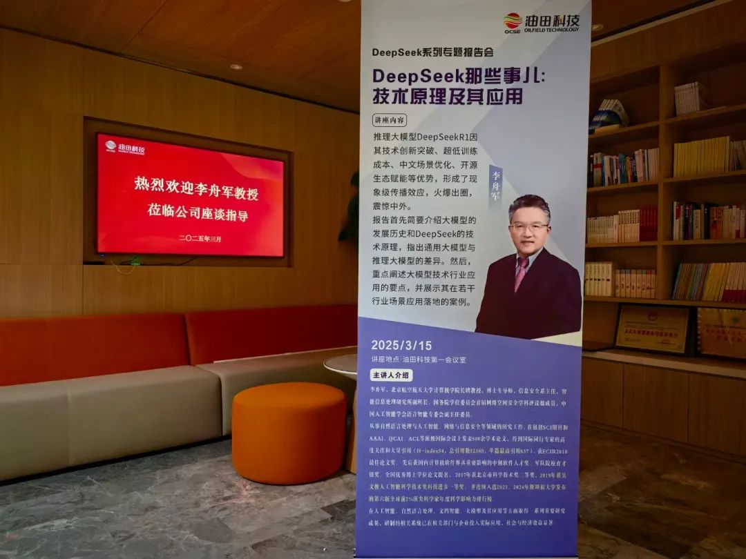 2025年3月15日,河南油田工程科技股份有限公司(以下簡稱“油田科技”)特邀智能思創首席科學家、北京航空航天大學李舟軍教授開展專題講座,李舟軍教授以《DeepSeek那些事兒:技術原理及其應用》為主題,為油田科技高管團隊及技術骨干揭開大模型技術的神秘面紗。